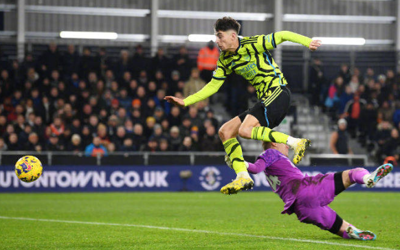 第60分鐘,禁區內熱蘇斯的挑傳,哈弗茨拍馬趕到將球送進球門,阿森納3-3盧頓。