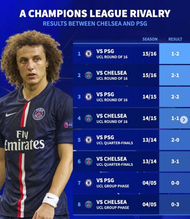 德轉列巴黎vs切爾西歷史對戰(zhàn):14到16連續(xù)3年歐冠淘汰賽相遇
